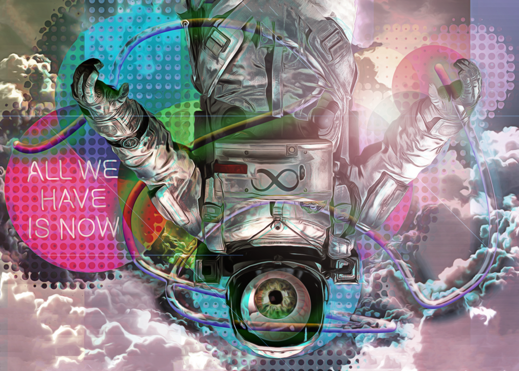 Remixing found iconography and typography into new irreverent compositions, an exercise rooted in a childhood practice of cutting up catalogs, comics, and other ephemera to create new pieces.